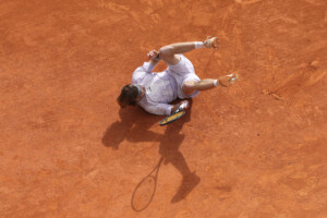 Battu par Marozsan au premier tour des qualifications l’an dernier pour sa première participation au Rolex Monte-Carlo Masters, le Belge de 26 ans confirme ses progrès, lui qui aimerait s’approcher du Top 20 (il est actuellement 47e). Déjà vainqueur de Rublev au Masters 1000 de Miami en 2025, Bergs a donc remis ça. Dès le premier jeu de la rencontre, le Russe se retrouva au sol, dos contre terre, après une glissade non maitrisée. Une chute prémonitoire qui ne l’empêcha pourtant pas de breaker le premier pour mener 2-1.